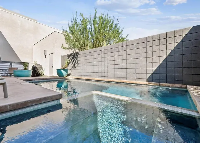 Stylish Gated Th + Private Heated Pool + Hot Tub Villa Palm Springs offers proximity to nearby tourist spots, such as the local 2 - acre Baristo Park, situated about 20 minutes' walk away.